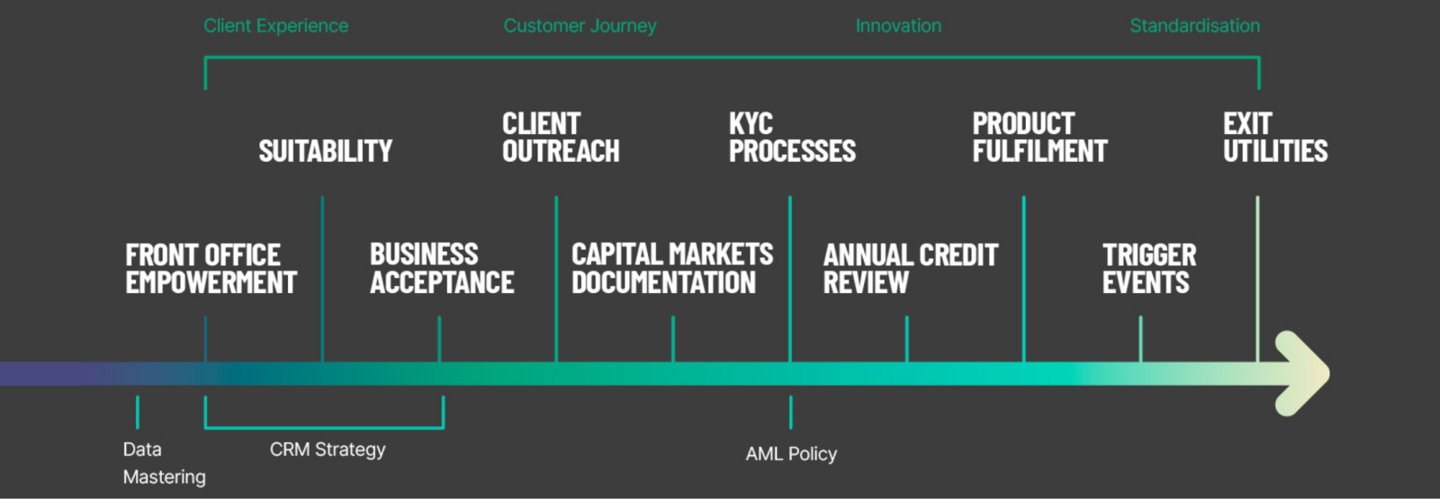 We’re experts across client onboarding. From client initiations to exits, KYC landscape to enabling sales, through to your CRM solution, we get it.
